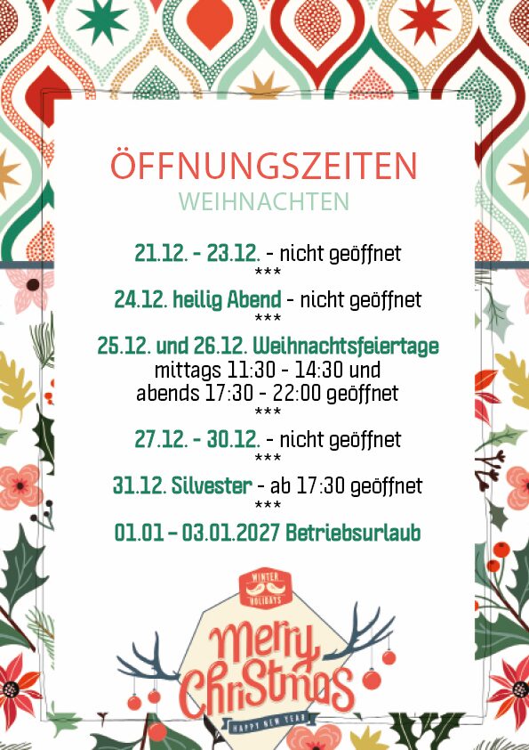 an Silvester haben wir ab 17:30 Uhr geöffnet.