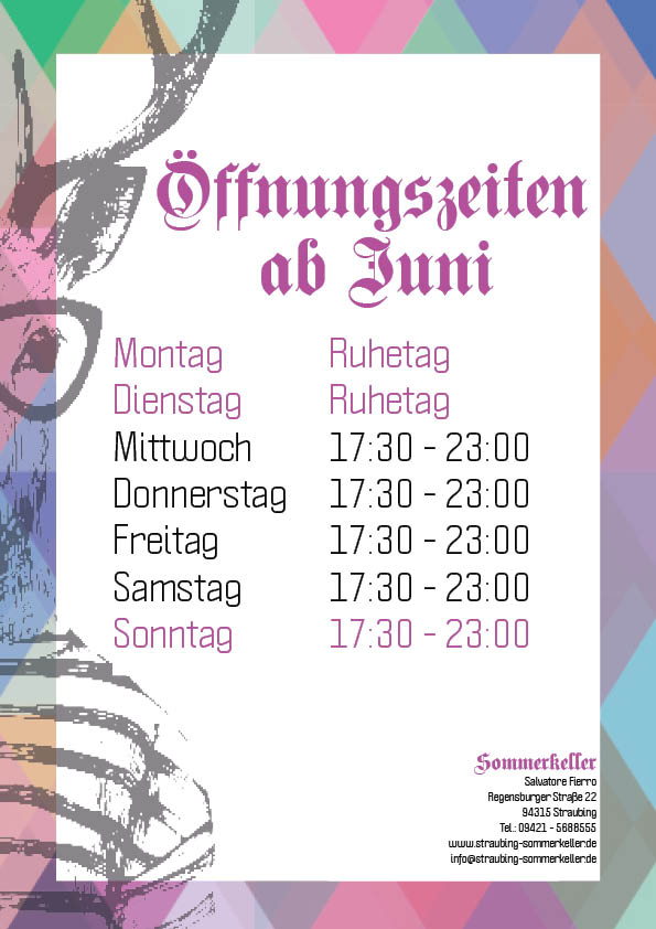 bitte beachtet unsere geänderten Öffnungszeiten ab Juni.
